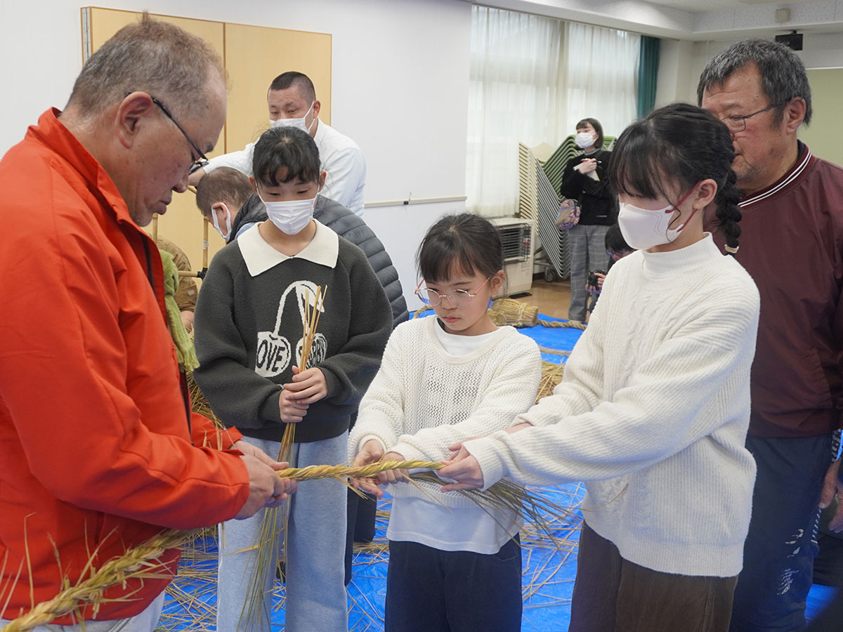 保存会の会員、そして地域の小学生と保護者が集まり、わらを綯い、巨大な草履や数珠を編み上げる様子は、単なる行事というよりは、地域の繋がりそのものを見ているようでした。
