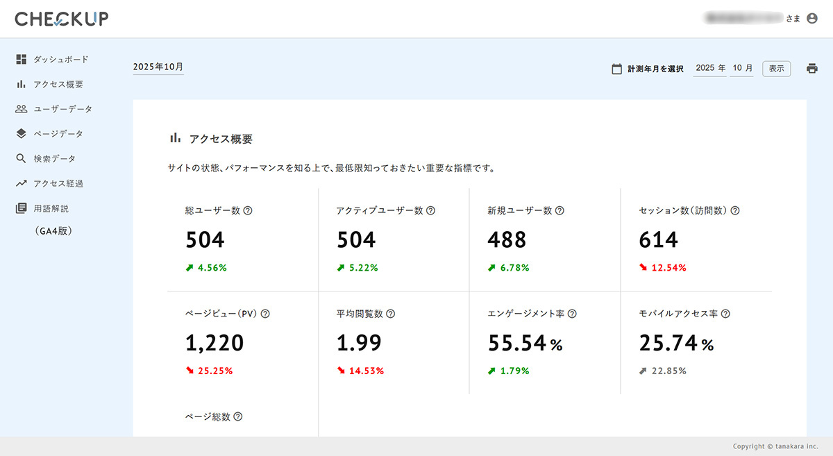 私たちタナカラでもそうした課題を感じていました。だからこそ、アクセス解析のデータを誰でも見やすい・分かりやすい形にまとめて、ウェブ上でいつでも確認できる『TANAKARA CHECKUP』を提供しています。
