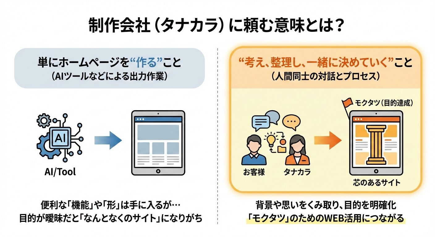 AIで作るか、制作会社に頼むか、どちらが正解という話ではありません。