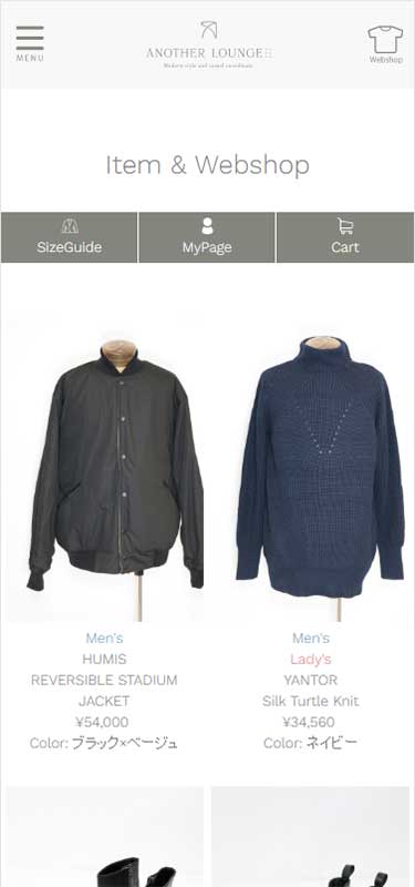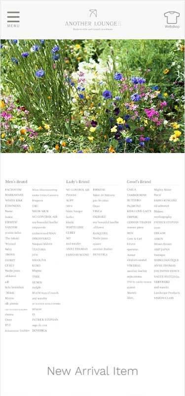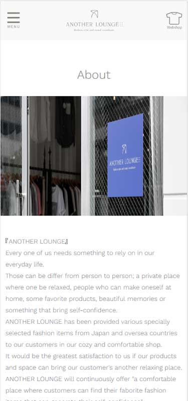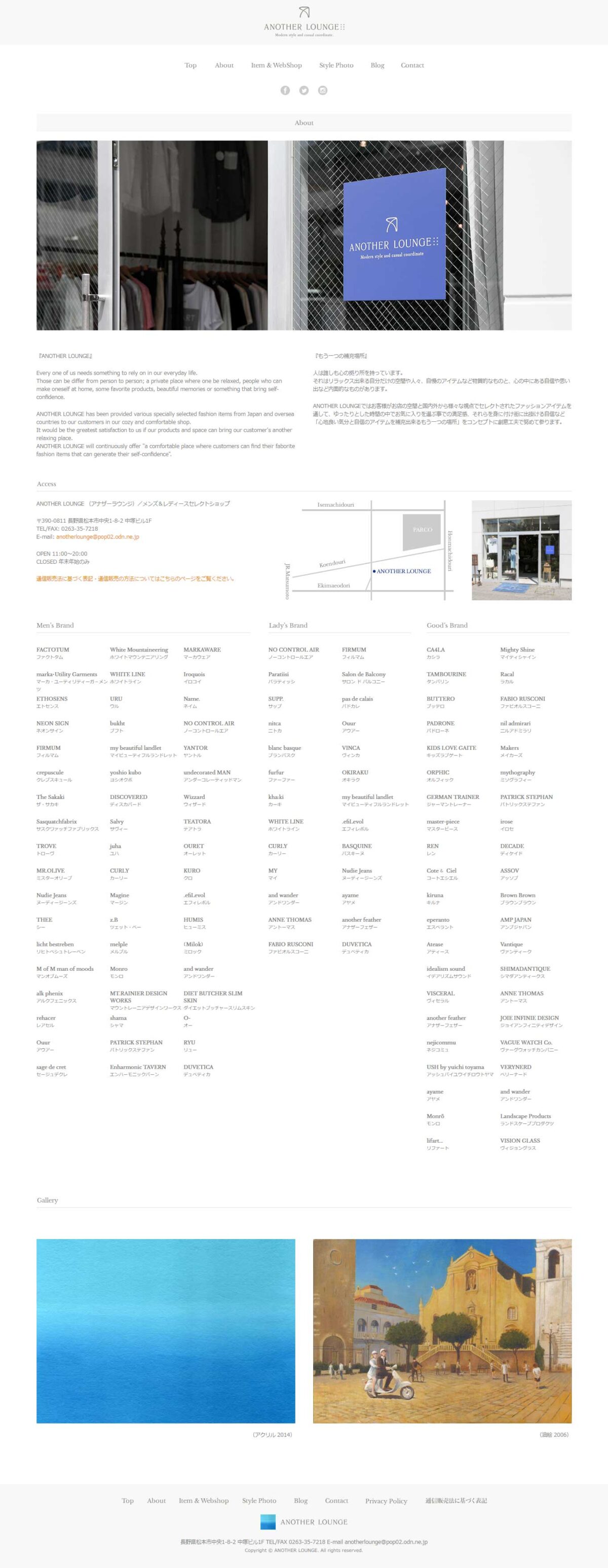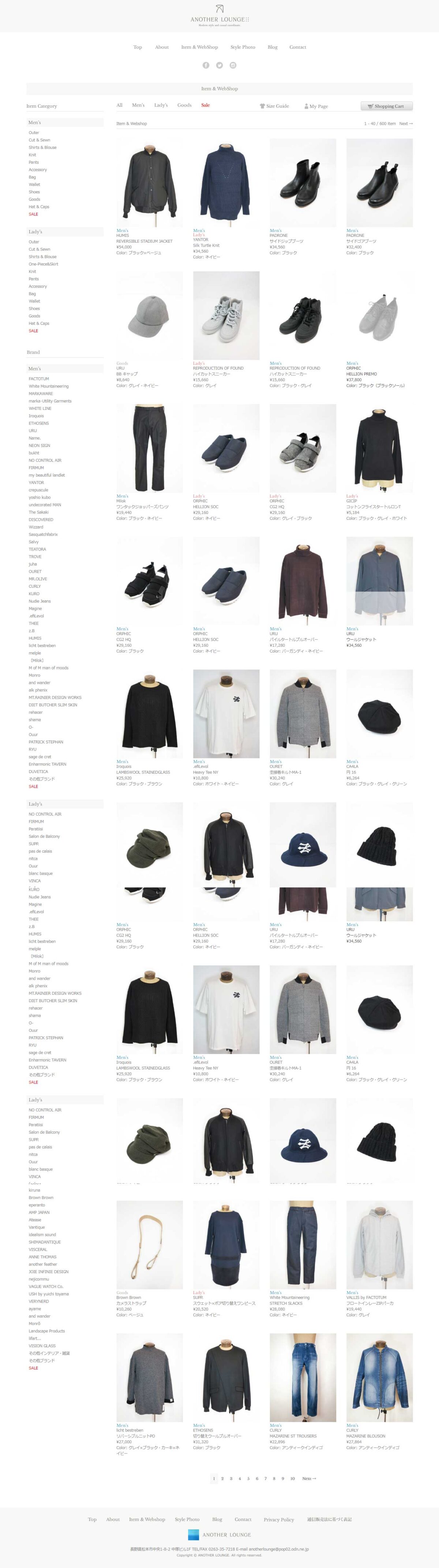 長野県松本市のメンズ&レディースセレクトショップ「ANOTHER LOUNGE」のサイト。通信販売も行っています。 Movable Typeで構築。