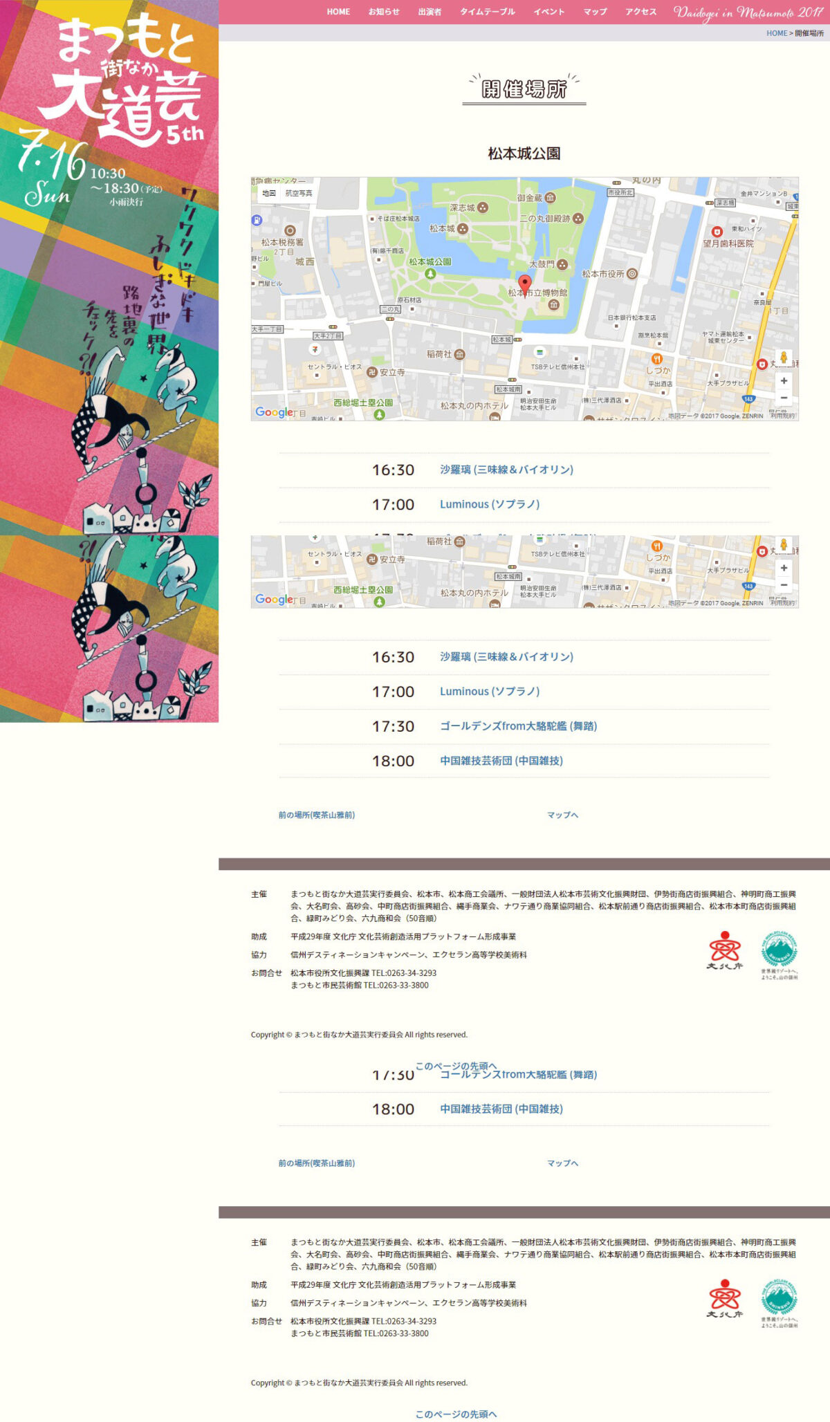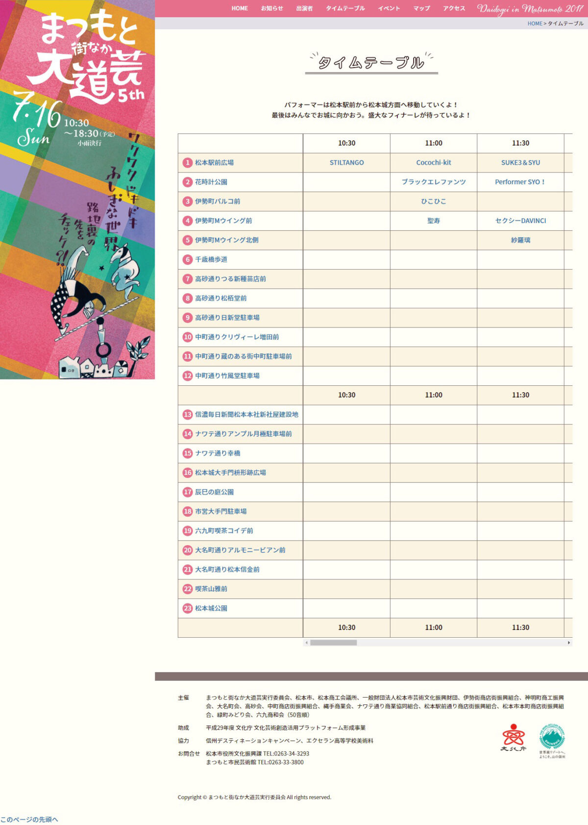 2年に一度、松本市内で行われるイベント「まつもと街なか大道芸」のサイト。