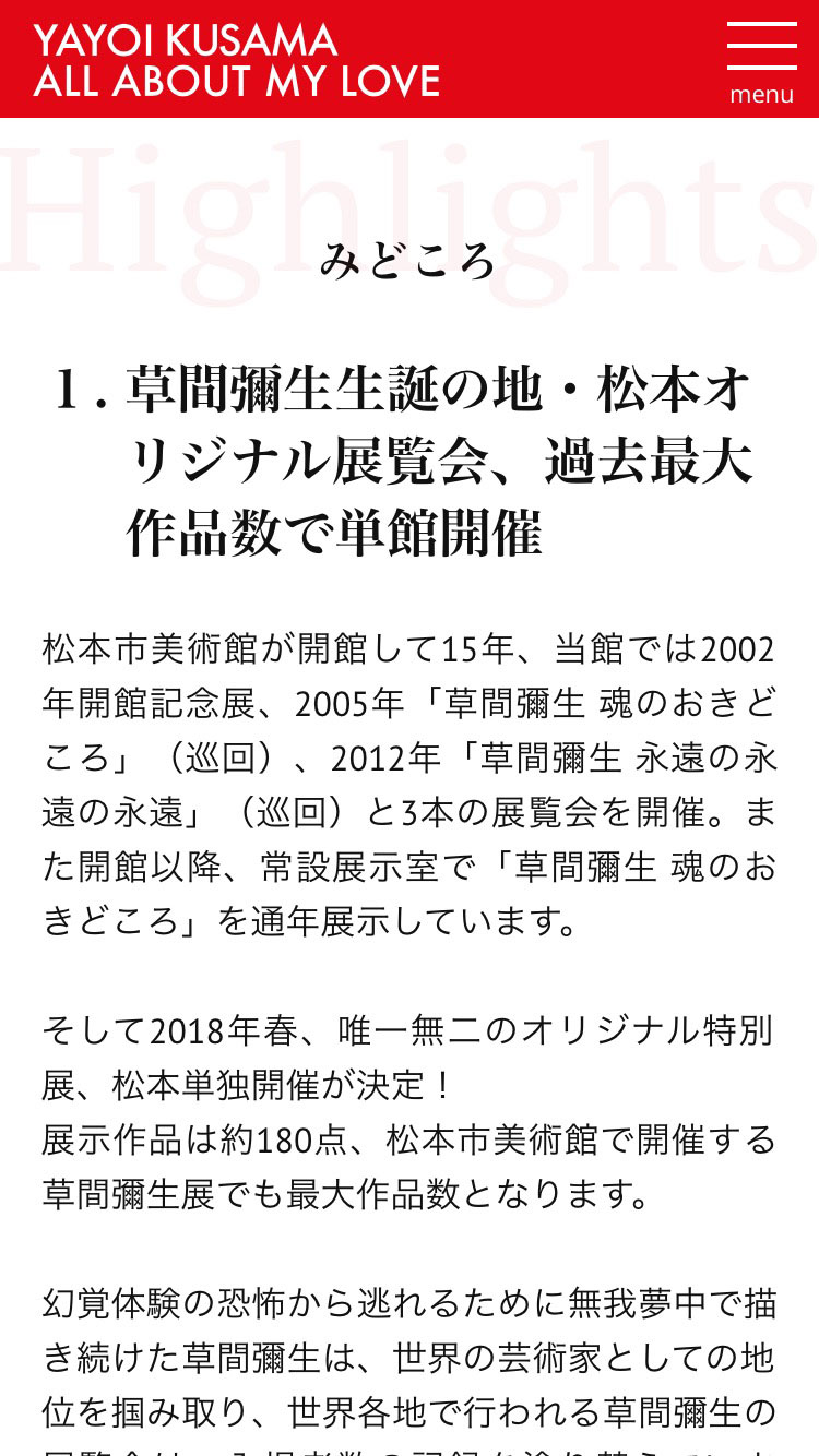 「草間彌生と松本」のコンテンツ制作も担当。