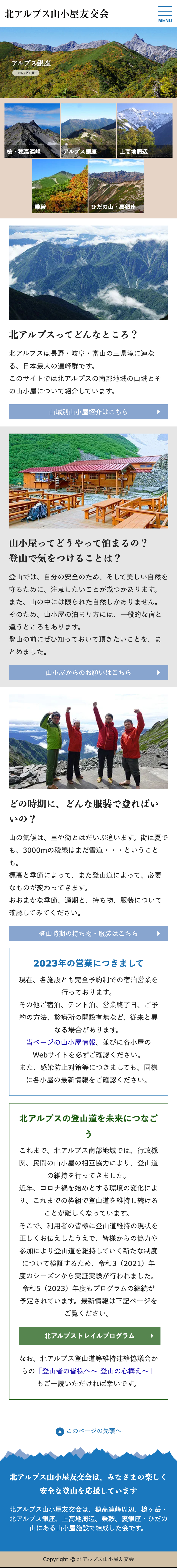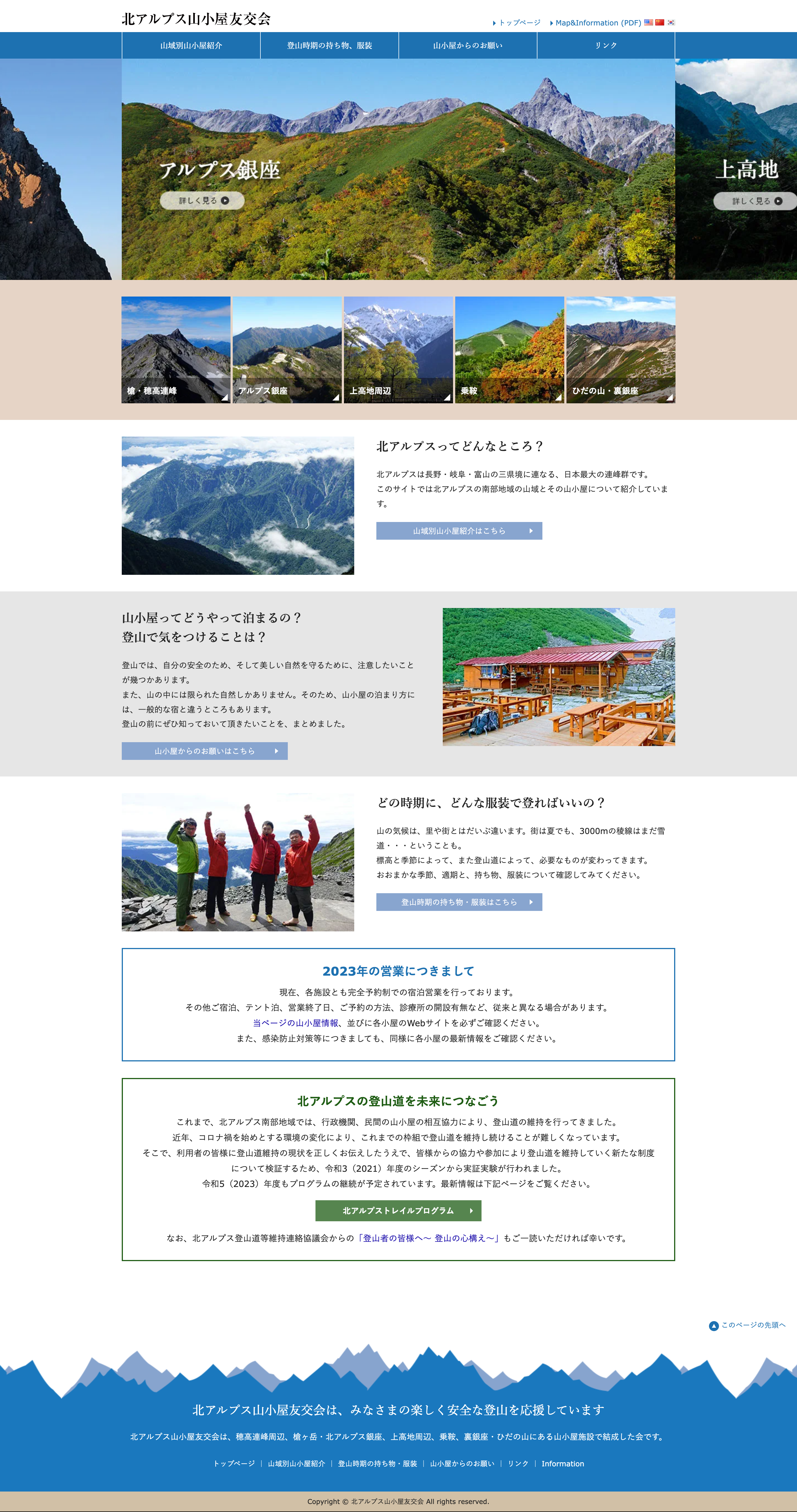 山小屋施設の紹介はもちろん、安全・安心な登山のための情報発信も行なっています。