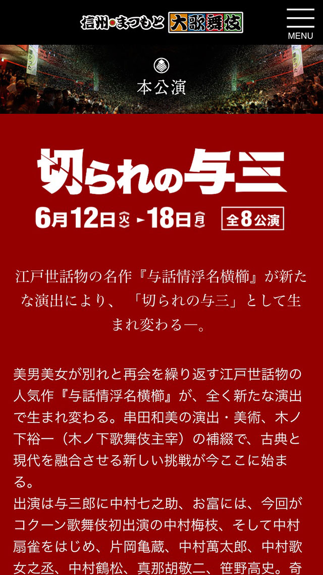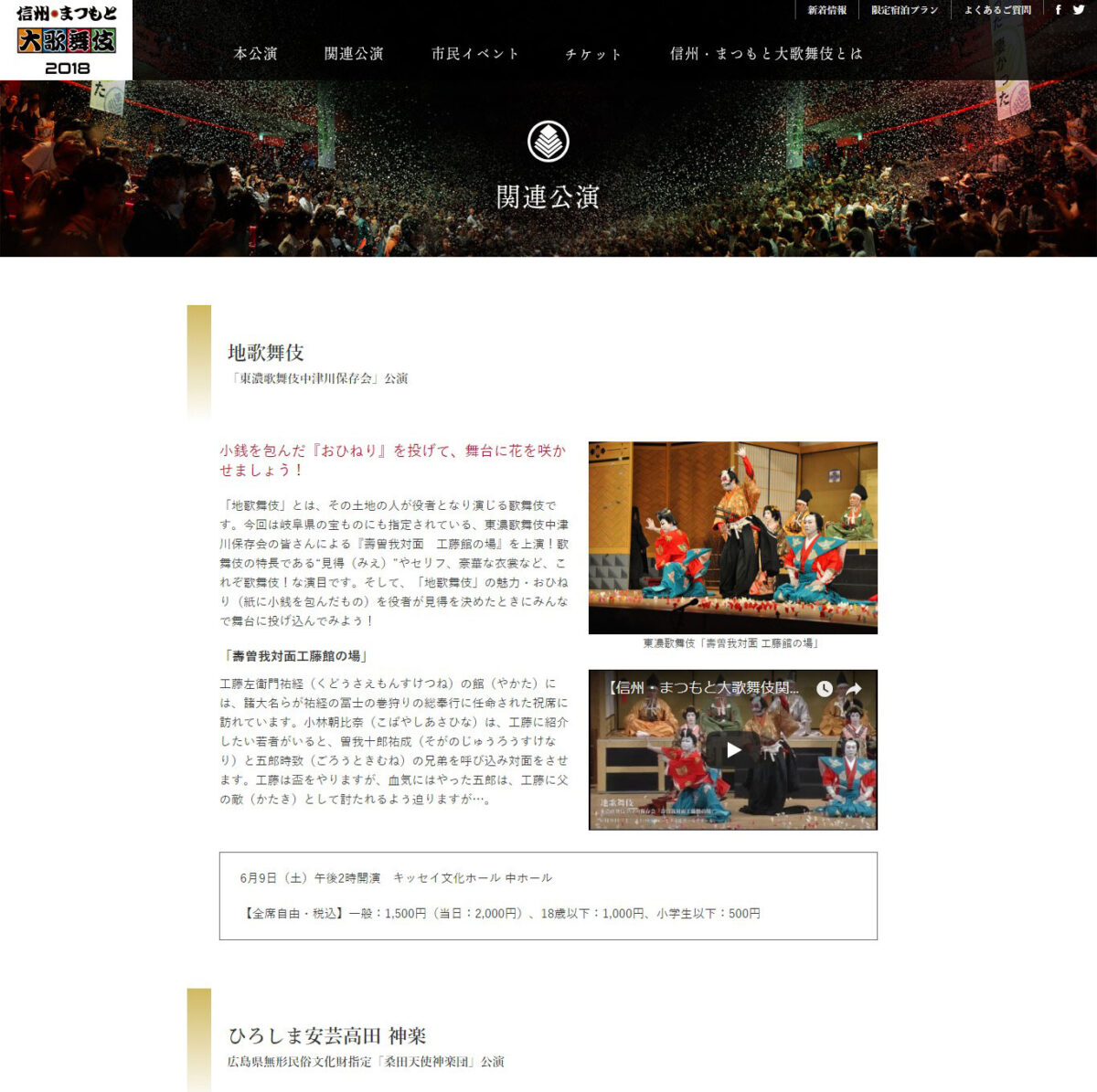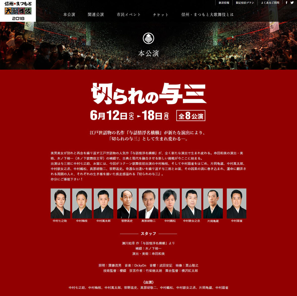 松本の夏の風物詩「信州・まつもと大歌舞伎」2018年版のサイト。