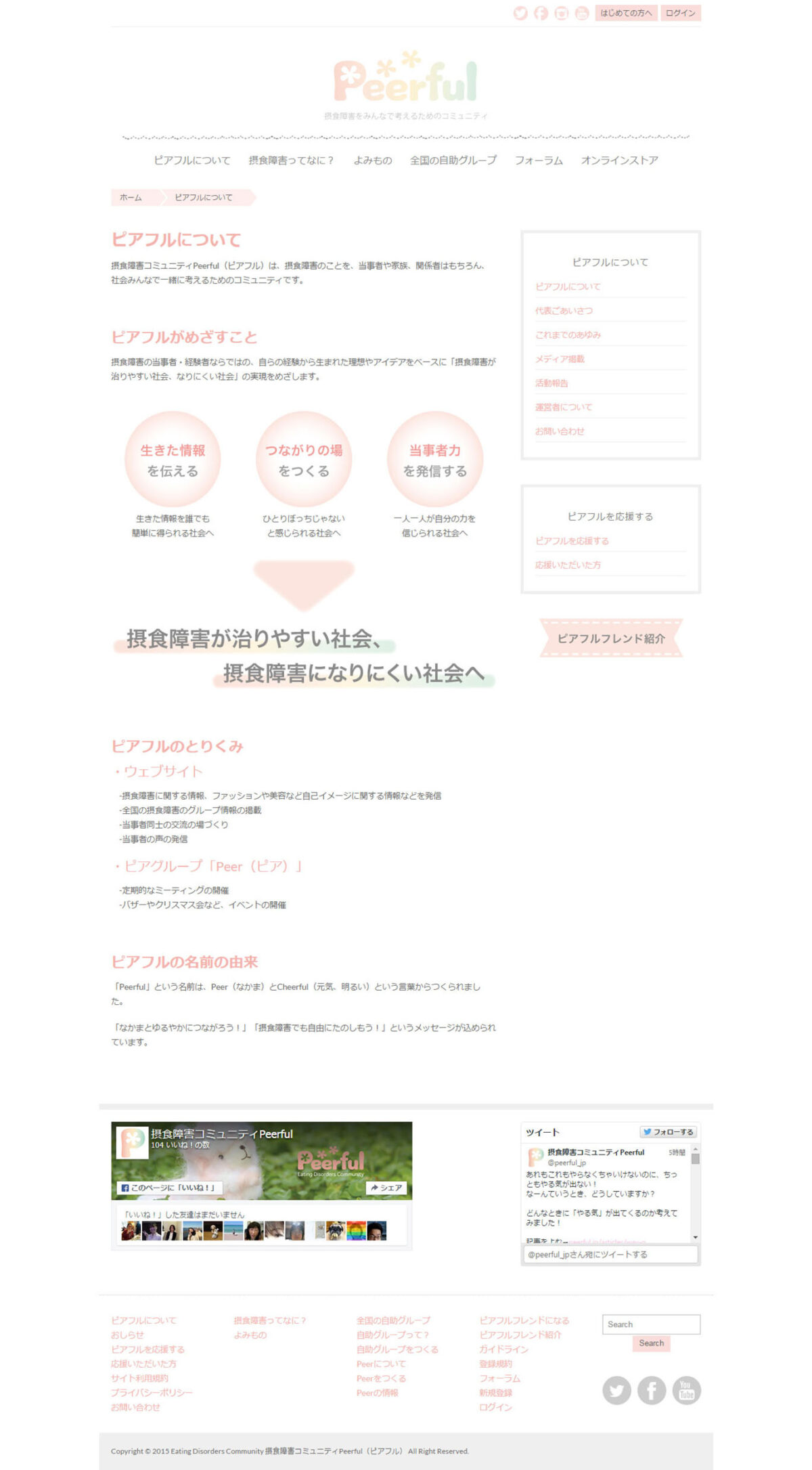 摂食障害を皆で考えるためのコミュニティ「Peerful(ピアフル)」のサイト。