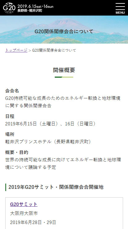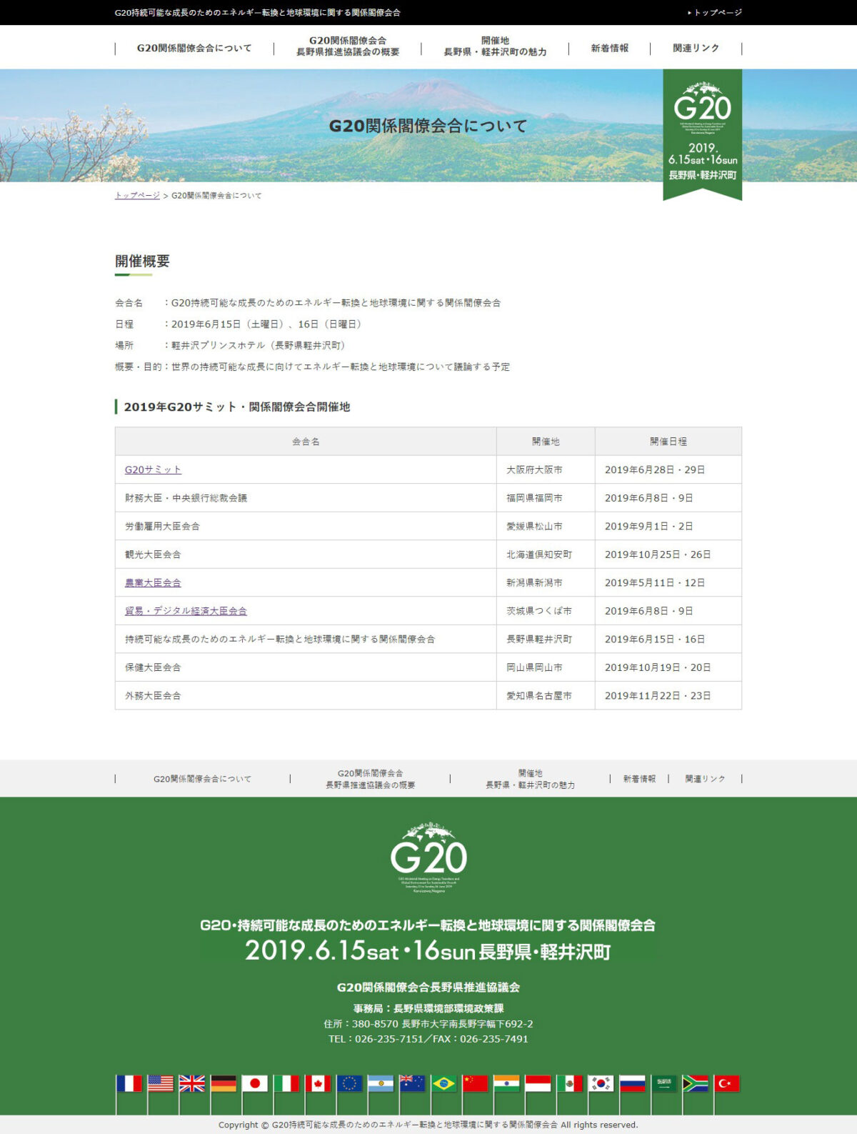2019年6月15日(土)16日(日)長野県軽井沢町で開催されるG20持続可能な成長のためのエネルギー転換と地球環境に関する関係閣僚会合のサイト。
