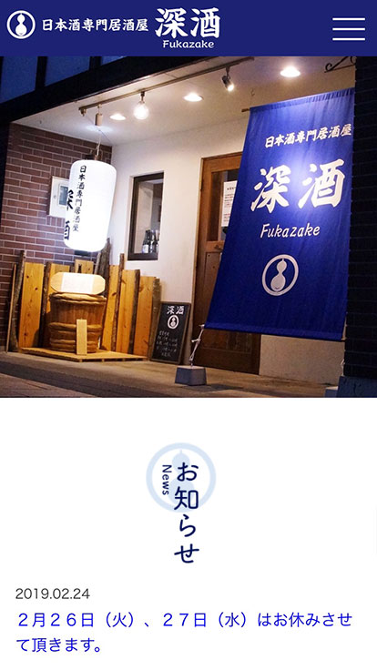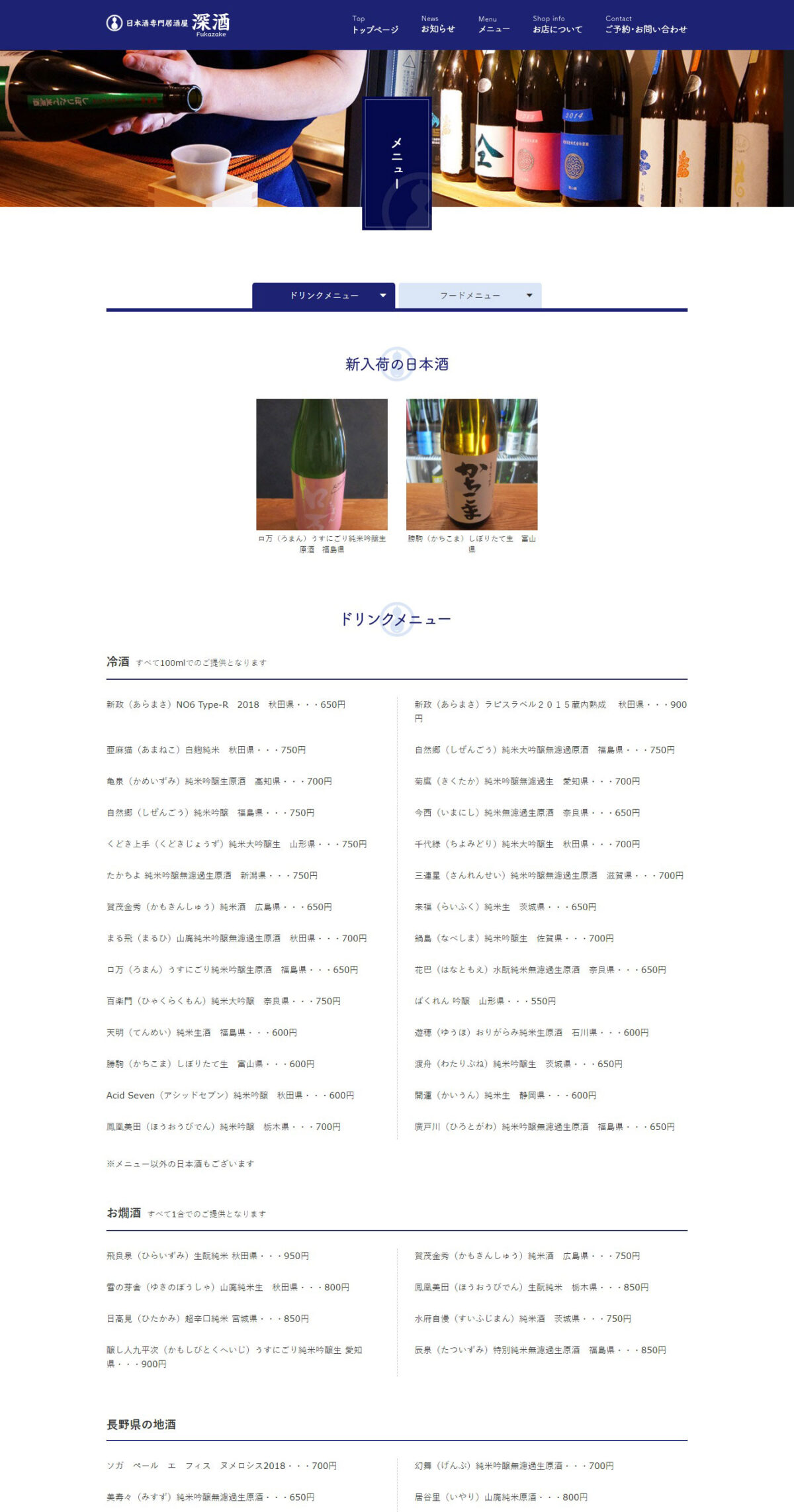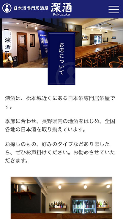 松本城近くにある日本酒専門居酒屋「深酒」のサイト。