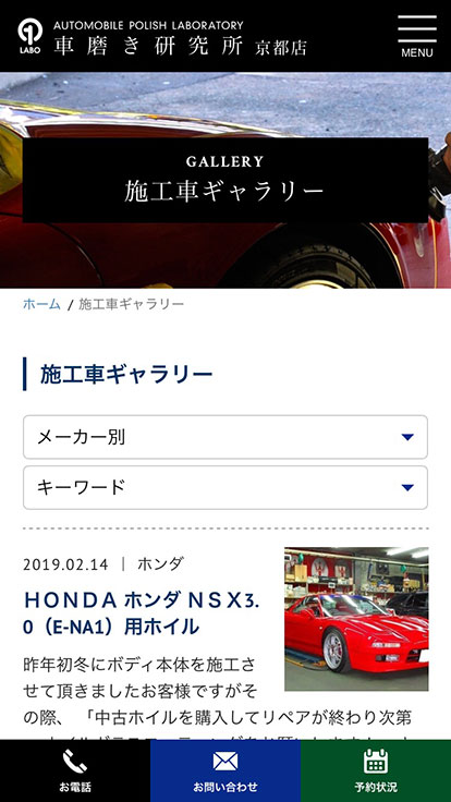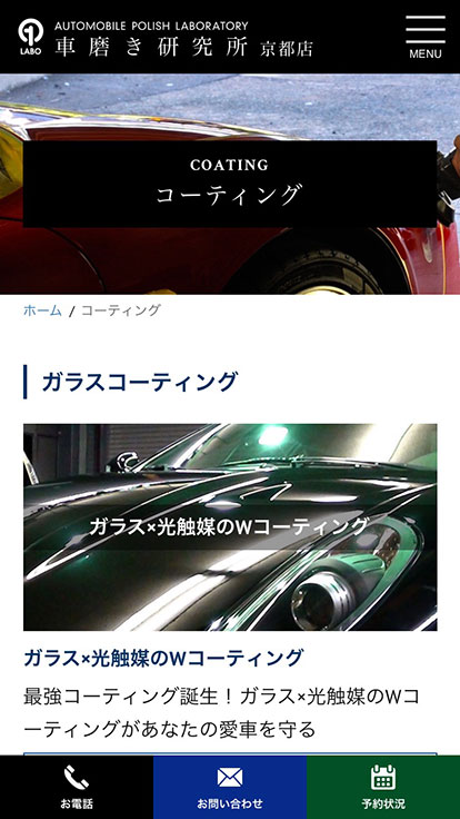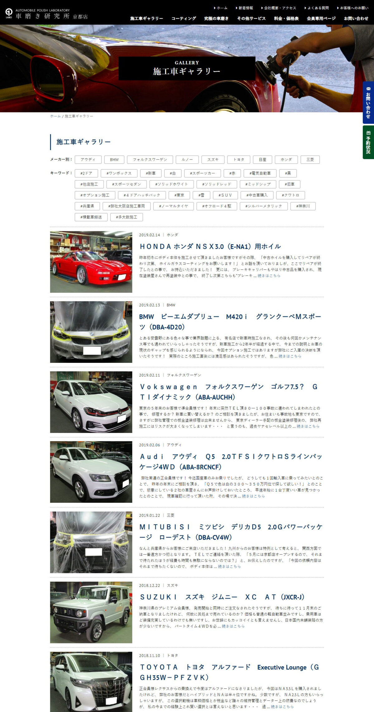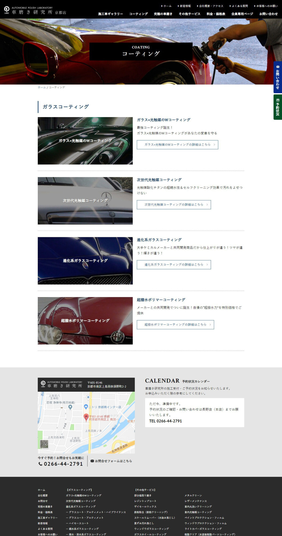 ガラスコーティング専門店「車磨き研究所」京都店のサイト。