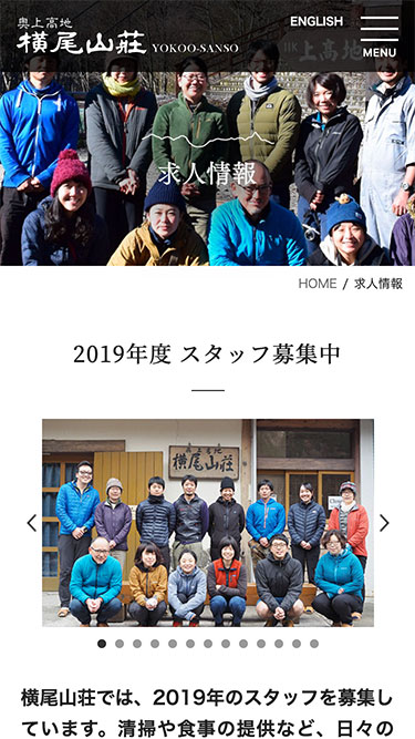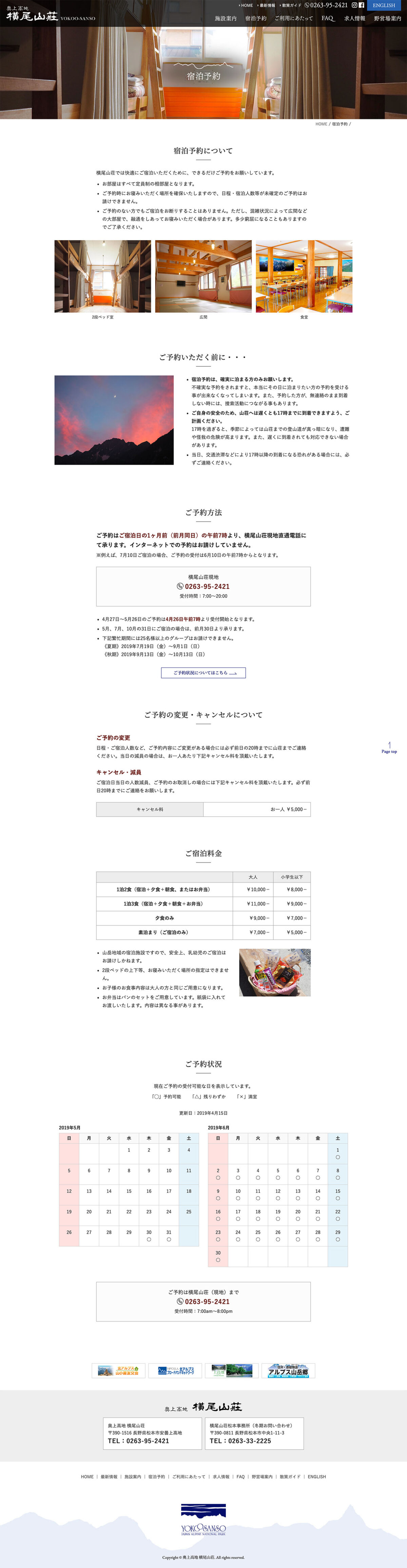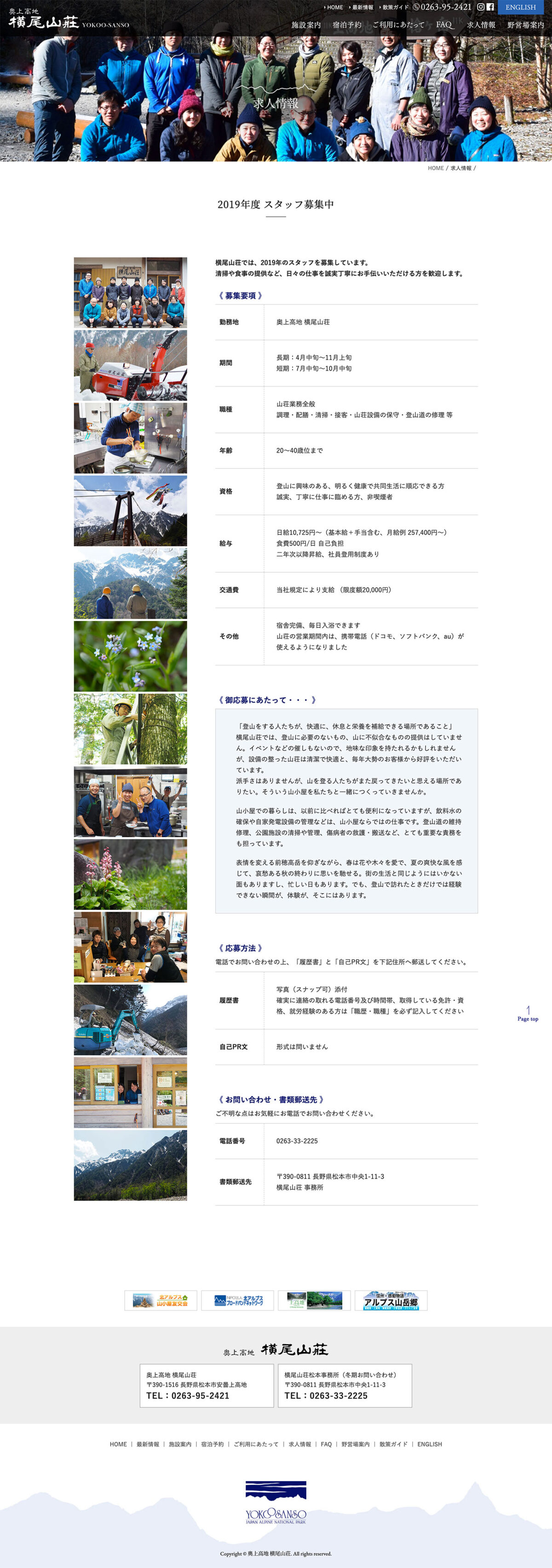 北アルプス登山のベースとして、またお風呂のある山小屋として親しまれている奥上高地横尾山荘のウェブサイト。 およそ9年ぶりのリニューアルです。 デザインを刷新し、完全スマホ対応、英語版サイトの情報を充実させました。 また、予約状況の表示カレンダーはタナカラオリジナルのプログラムです。