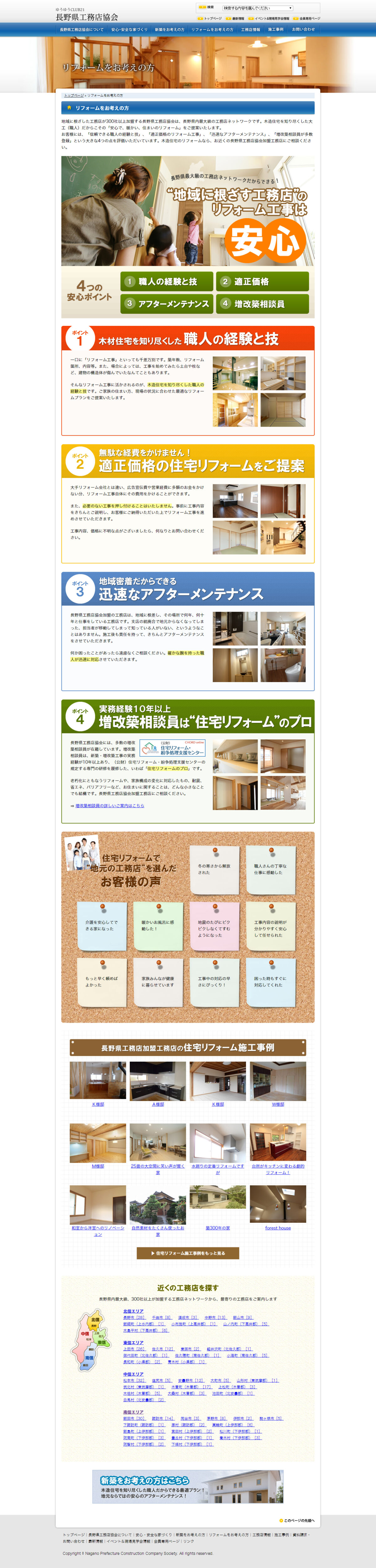 県下最大級の工務店ネットワーク「長野県工務店協会」のサイト。