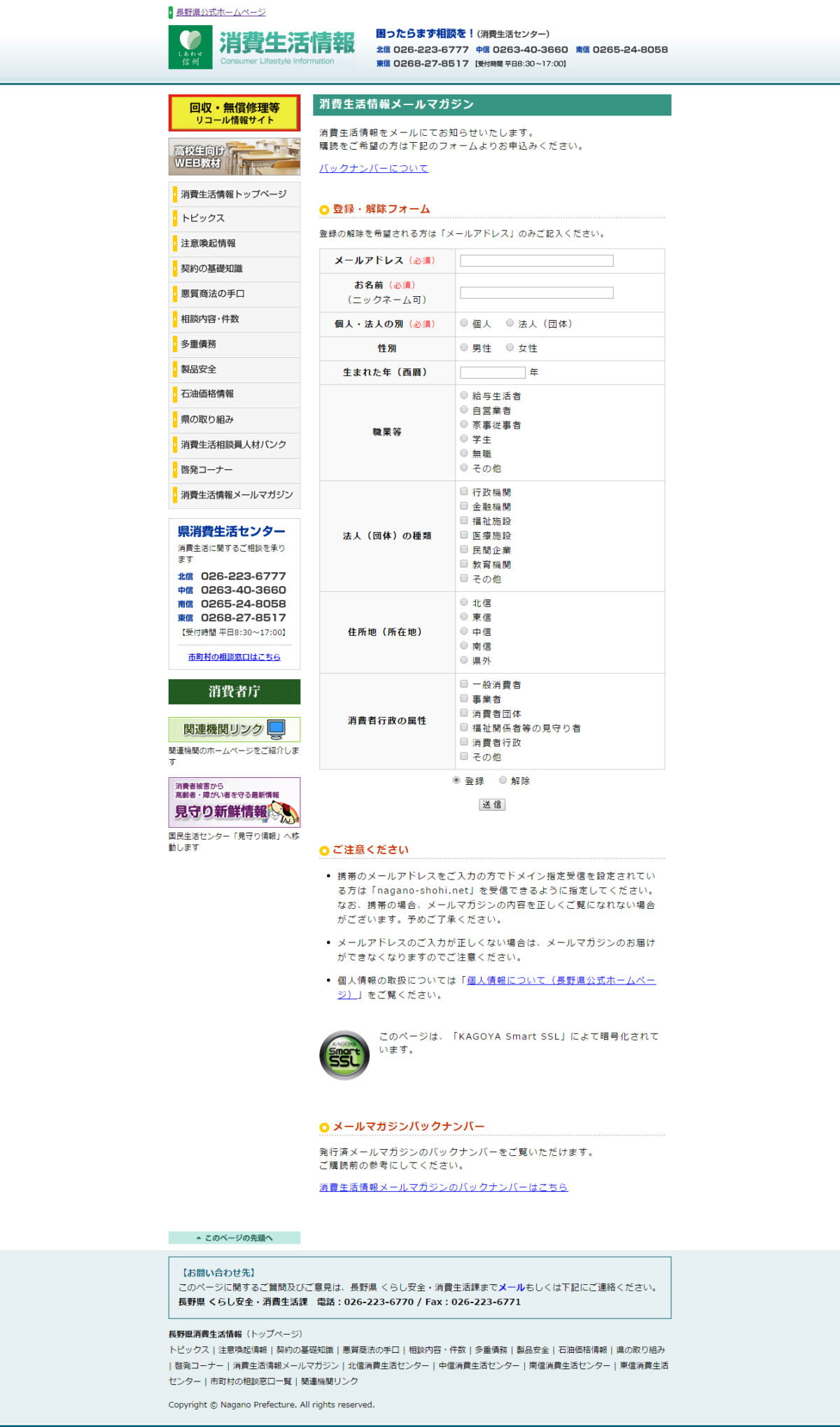 長野県消費生活情報