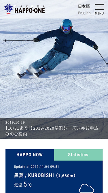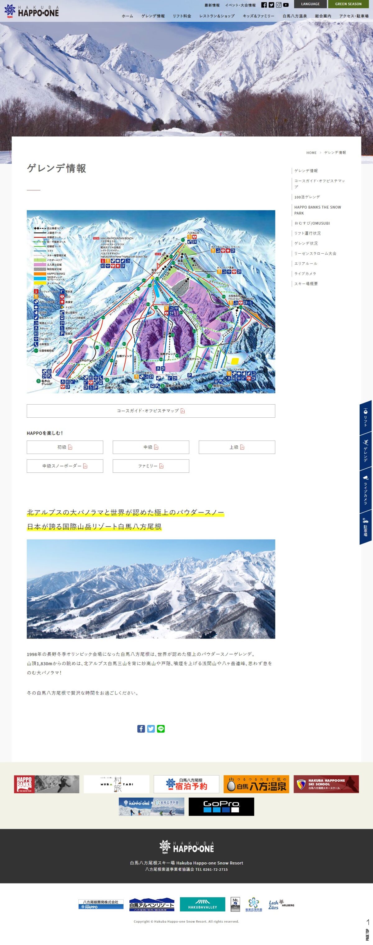 白馬八方尾根スキー場の公式サイト。 日本語版と英語版を同一デザイン・システムにてリニューアル。 日本語版は4年ぶり、英語版は8年ぶりのリニューアルとなります。 「WPML」による翻訳システムを導入し、日本語/英語での情報を統一させ、管理も容易にしています。 また、早割シーズン券のオンライン受付システムもブラッシュアップしました。 WordPressで構築。