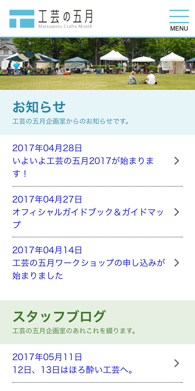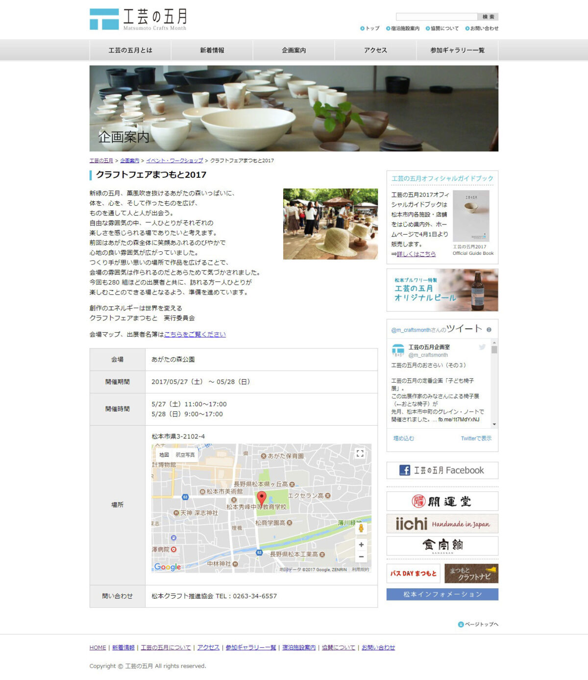 松本市で毎年5月に行われる月間イベント「工芸の五月」の公式サイト。