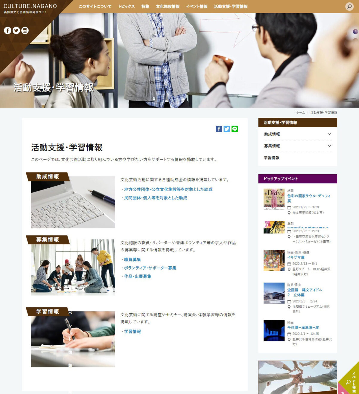 長野県の文化芸術情報発信サイト。 AMP対応。GDPR対応。サイト名・ロゴ制作も行いました。 季刊誌の編集・制作も行っています。 WordPressで構築。