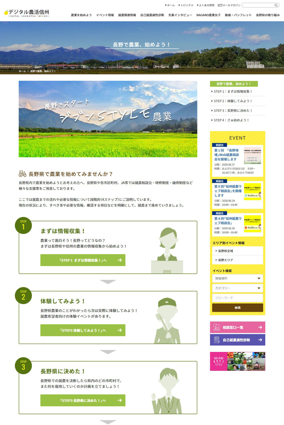 イベント情報やトピックス、先輩インタビューは各一覧ページからはもちろん、市町村のページでも確認することが出来るようになっており、必要な情報をより取得しやすいサイトになっています。