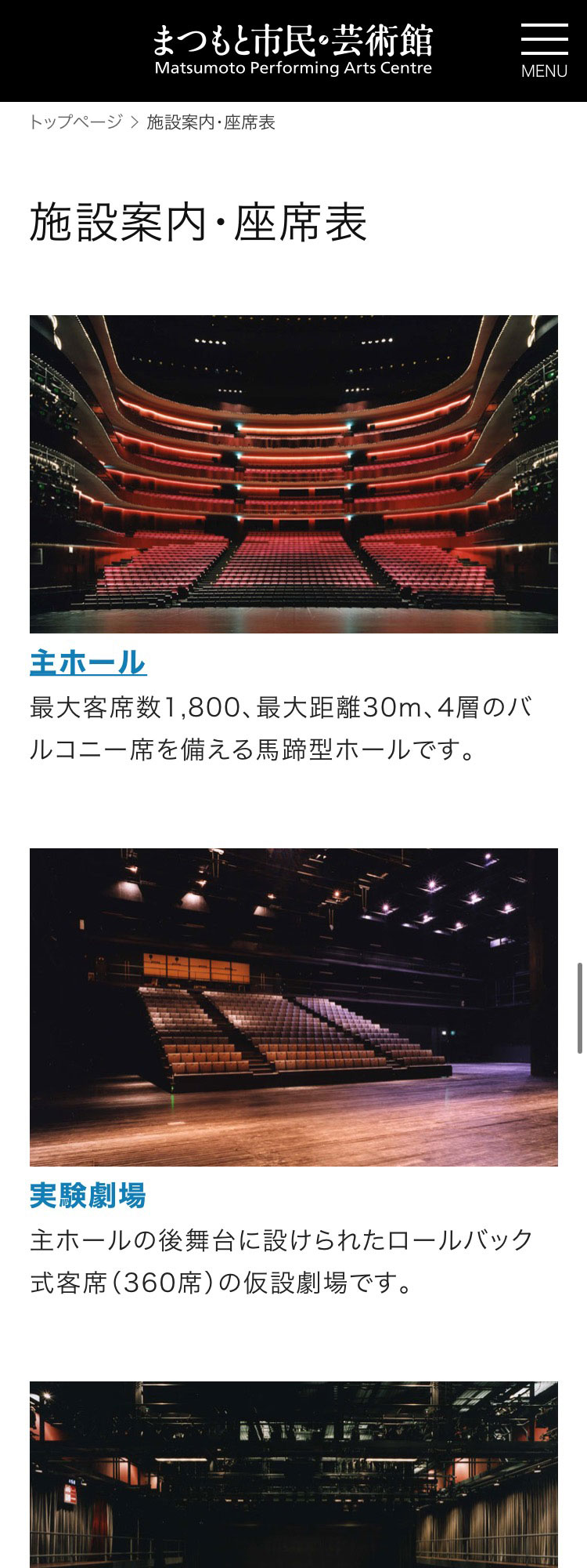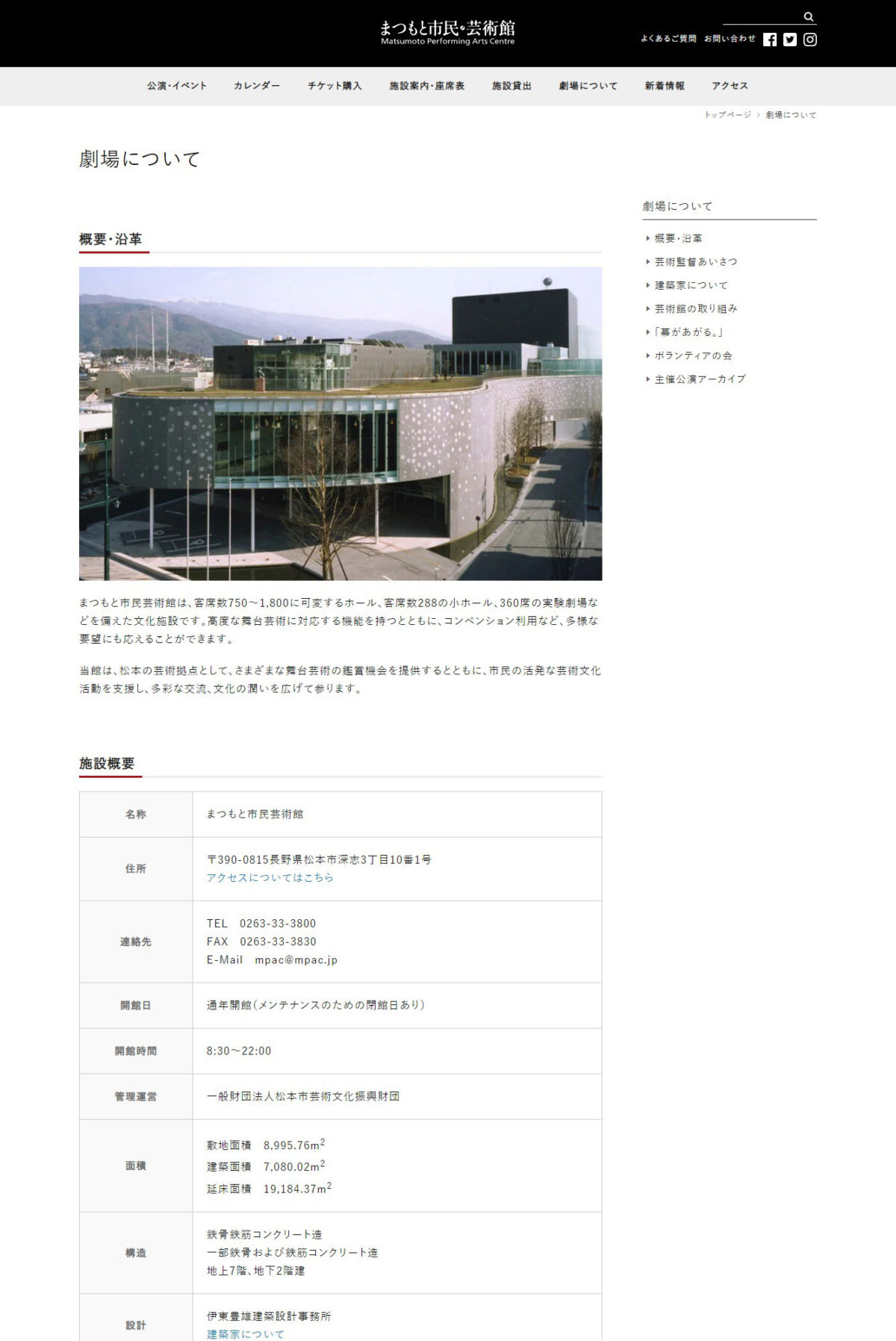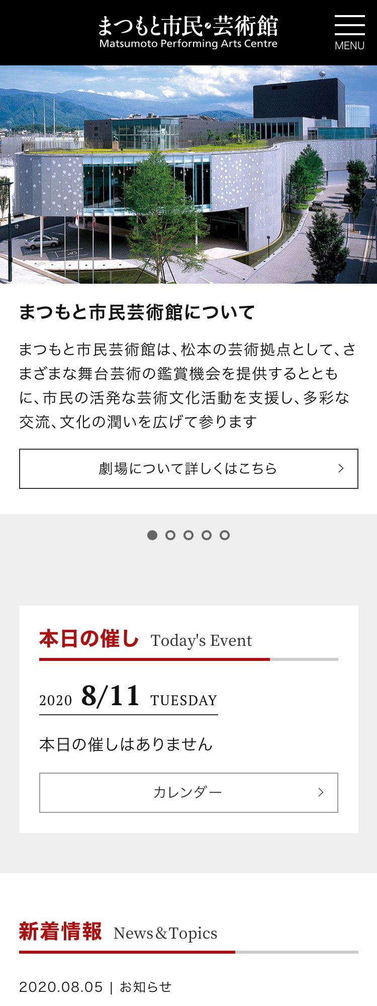 松本市の「まつもと市民芸術館」公式サイト。前回(2013年4月公開)から7年ぶりのリニューアル。