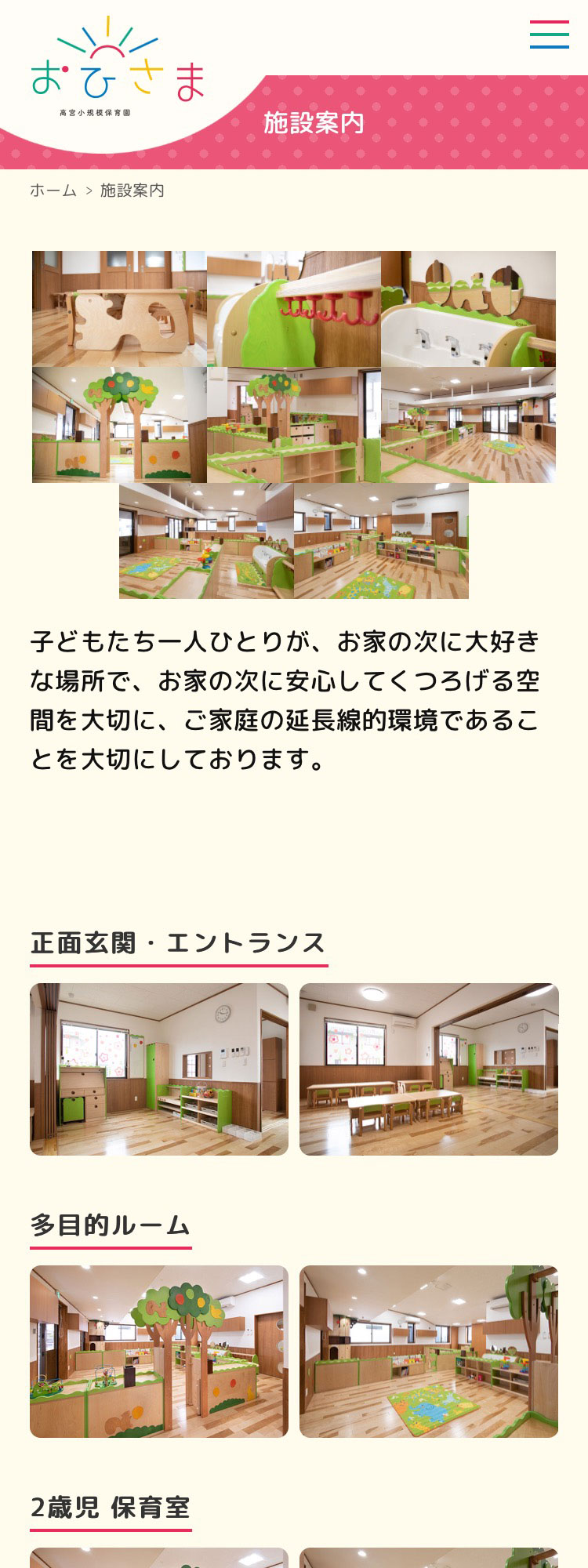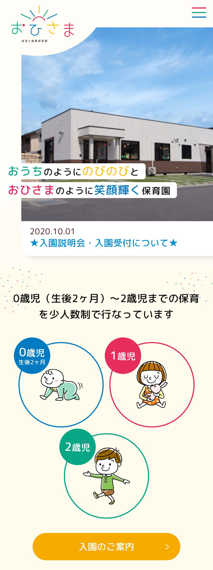 2020年4月、松本市高宮に開園した小規模保育園「おひさま」のウェブサイト。