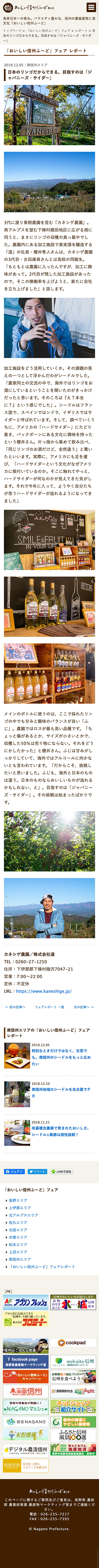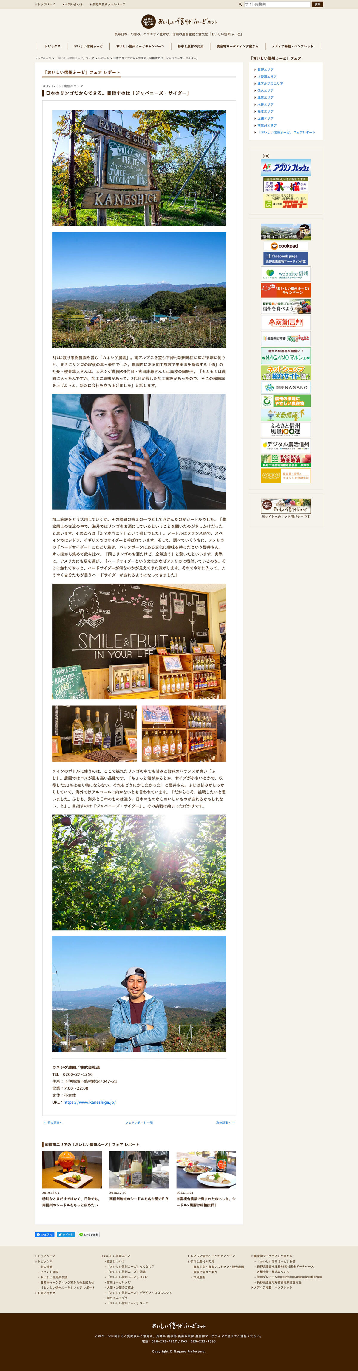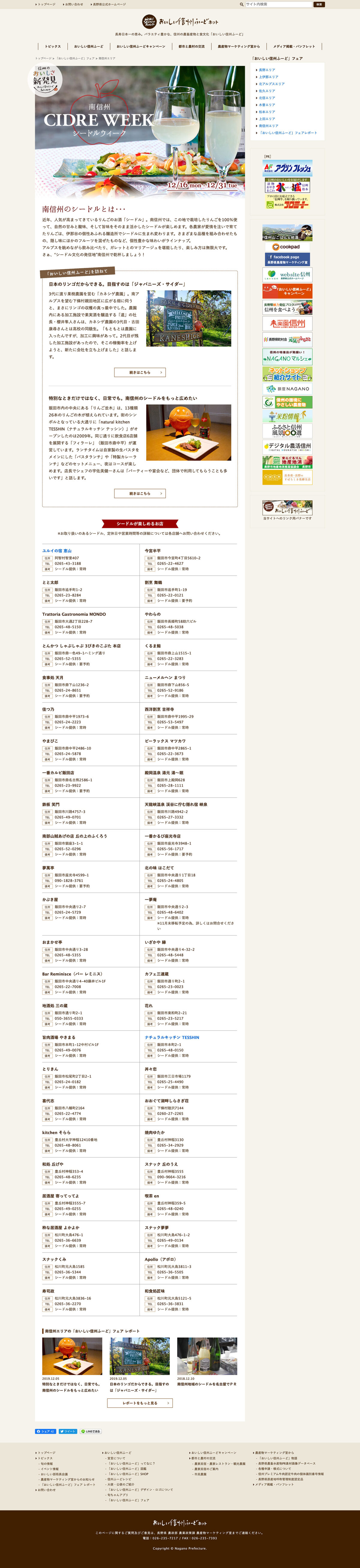 エリアごとにテーマ食材とその食材を使った料理等を提供する店舗情報を掲載するページを作成。 また、テーマ食材の魅力を紹介するために、生産者、料理等の提供店の取材を行って制作した記事を「おいしい信州ふーど」フェアレポートとして掲載しました。