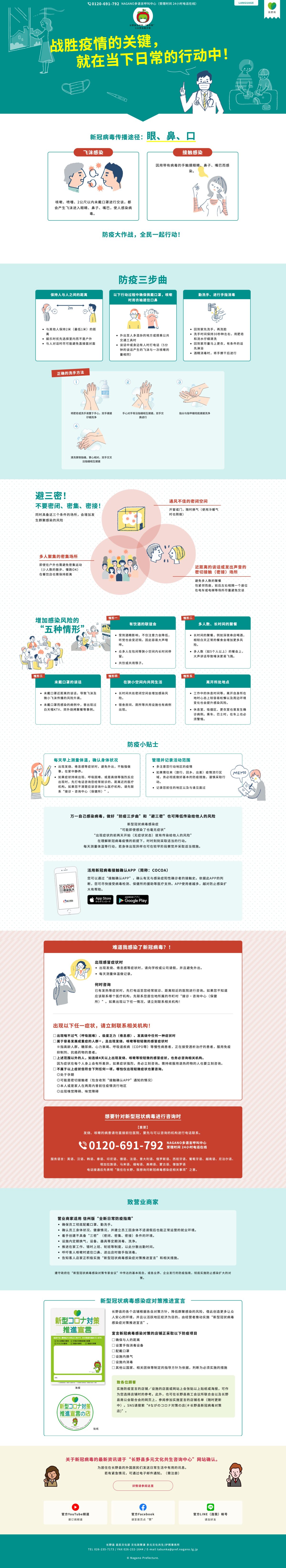 長野県が新型コロナウイルスの感染拡大防止・感染予防の対策をまとめた『信州版「新たな日常のすゝめ」』を、県内在住の外国人に周知するための特設ページ。