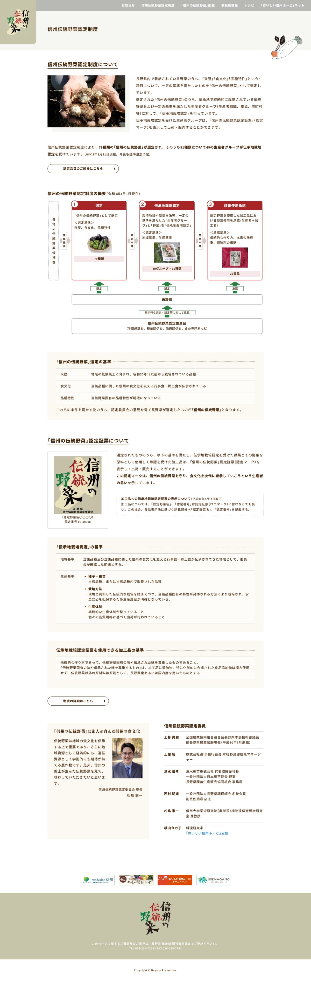 「おいしい信州ふーど」ネット内に開設した「信州の伝統野菜」特設サイト。