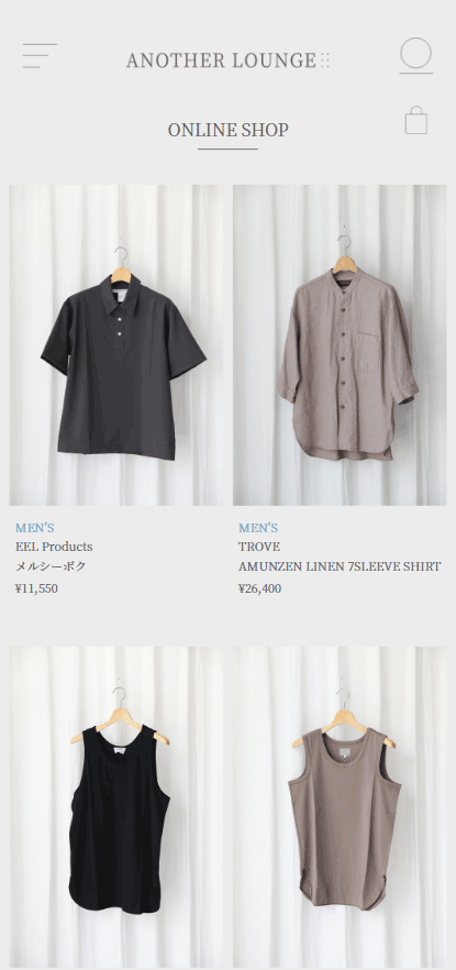長野県松本市のメンズ&レディースセレクトショップ「ANOTHER LOUNGE」のサイト。