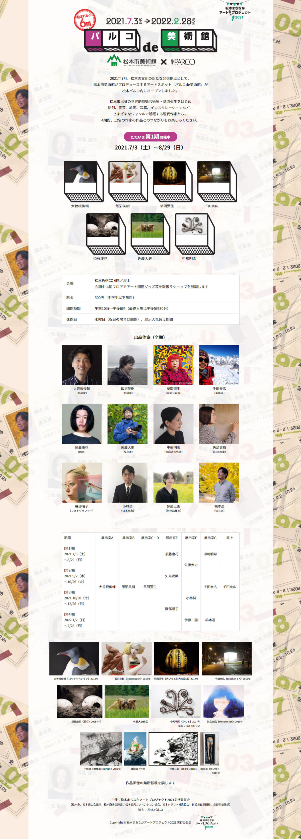 メインとなる「パルコde美術館」は、松本パルコの最上階に8ヶ月間限定で開館する特別な美術館。 松本市や長野県ゆかりのアーティストを紹介しました。