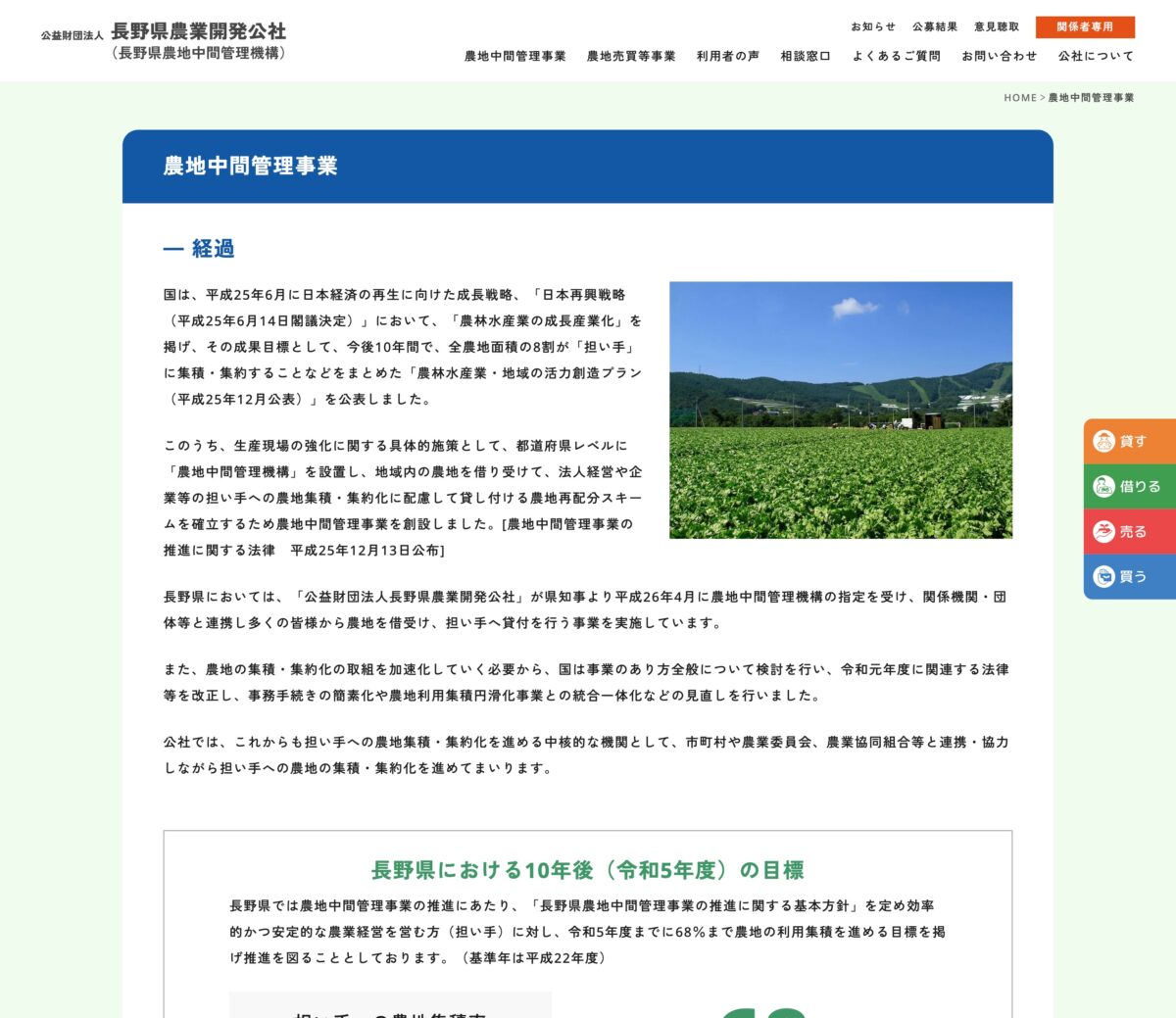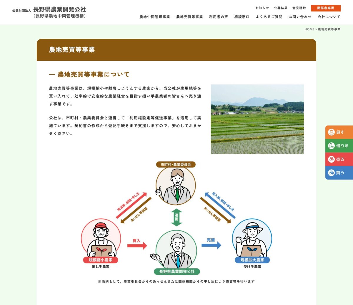 農地の貸借、売買の仲介を行う公益財団法人長野県農業開発公社の公式ウェブサイト。