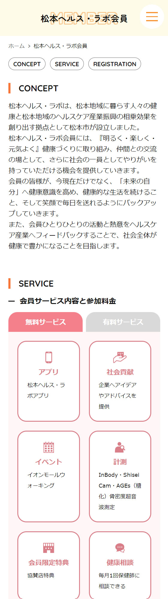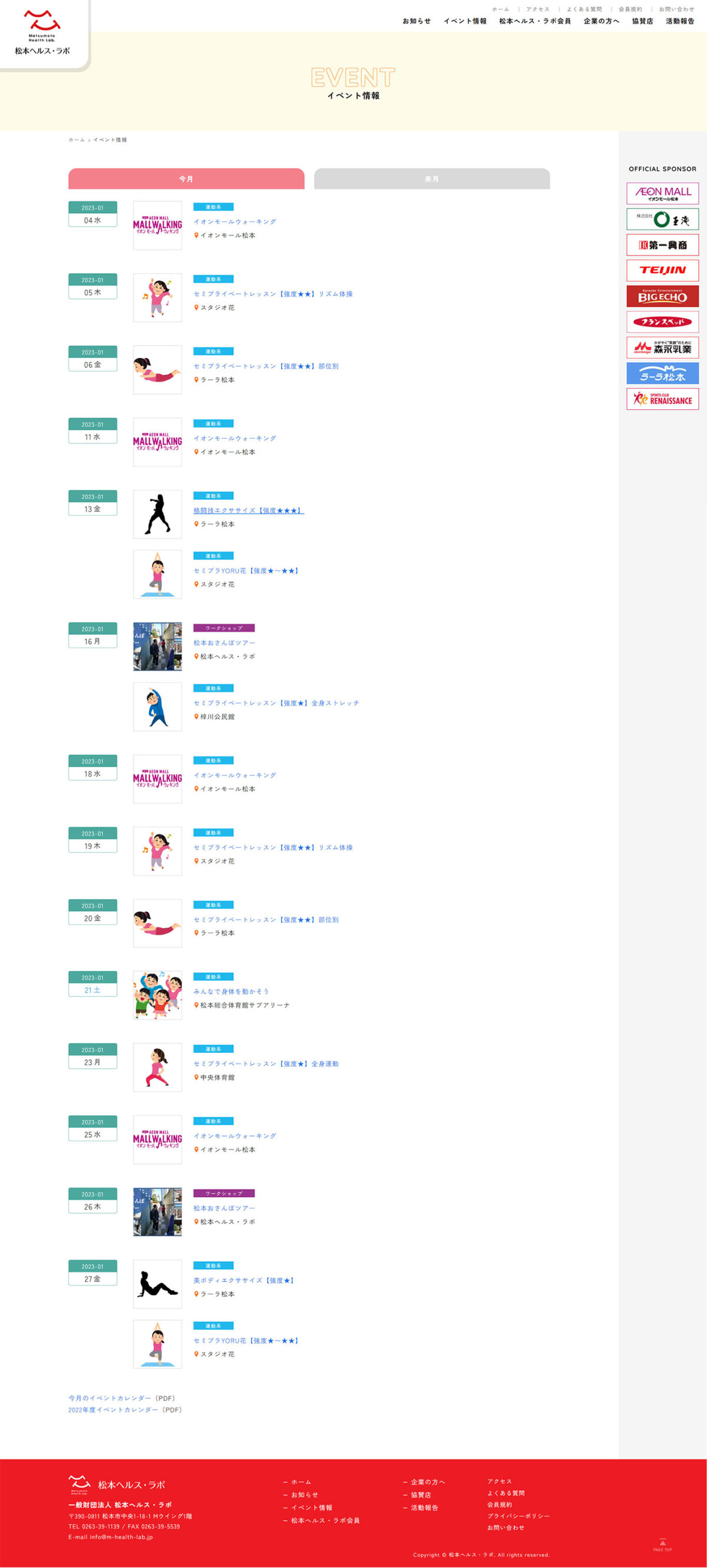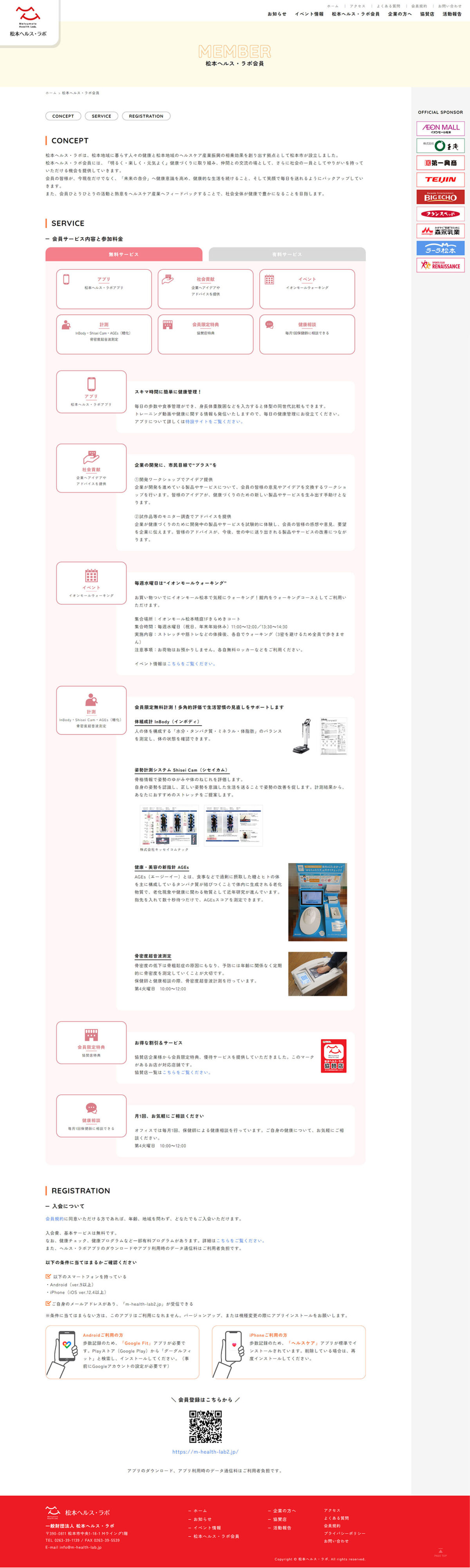 「松本ヘルス・ラボ」のサイト。前回(2018年3月公開)からリニューアル。 ヘルス・ラボ会員向けと企業向け、それぞれにページを作って、情報を分かりやすくしました。 配色は優しい色使いにして、イラストも用いて、親しみやすさを出しました。WordPressで構築。