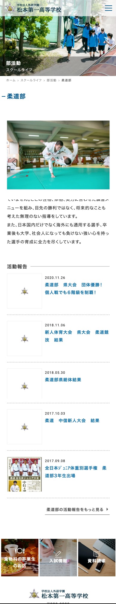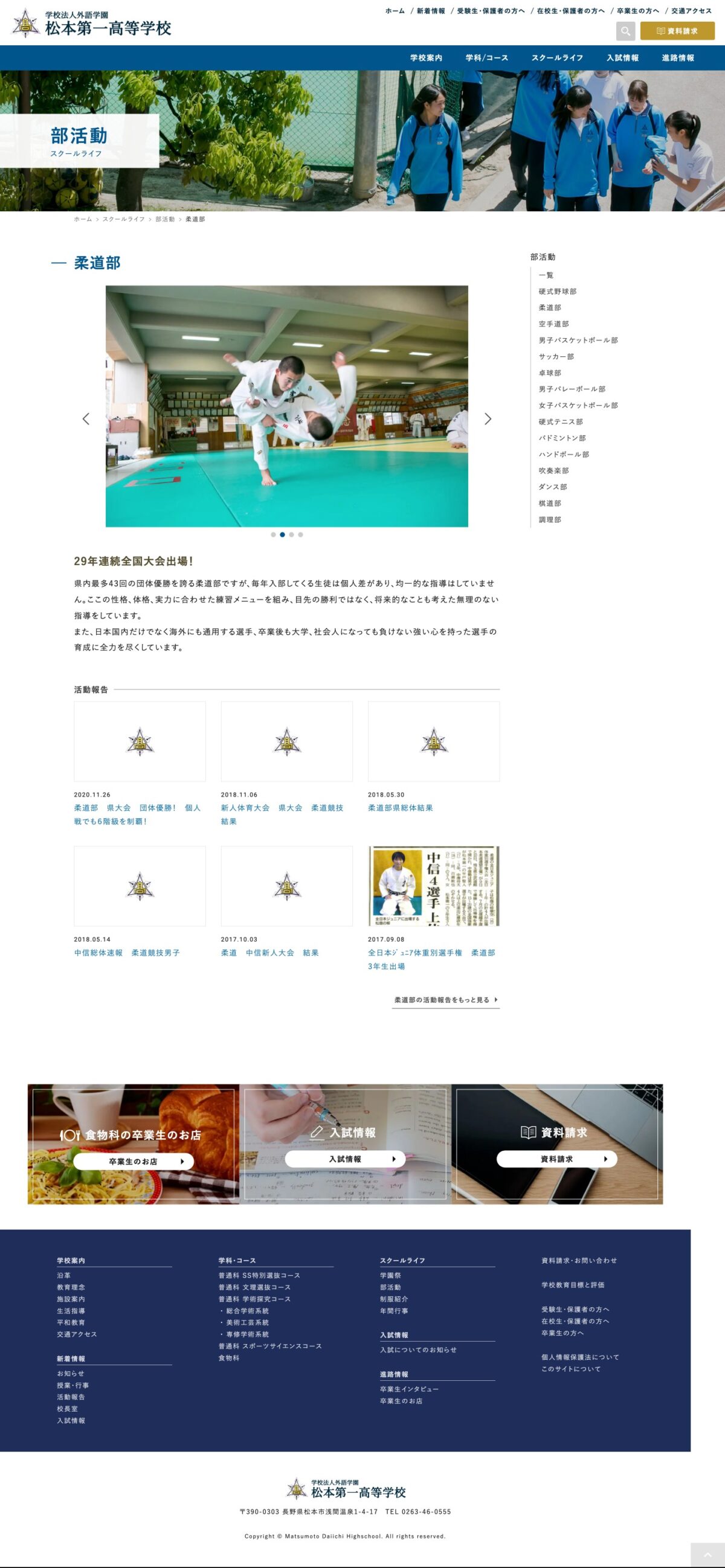 今回のリニューアルでは、学校で更新していただけるコンテンツを増やし、各部活動ごとの活動内容や普通科学術探求コース 美術工芸系統の作品展、食物科卒業生のお店などの情報もタイムリーに発信していただけるシステムとなっています。