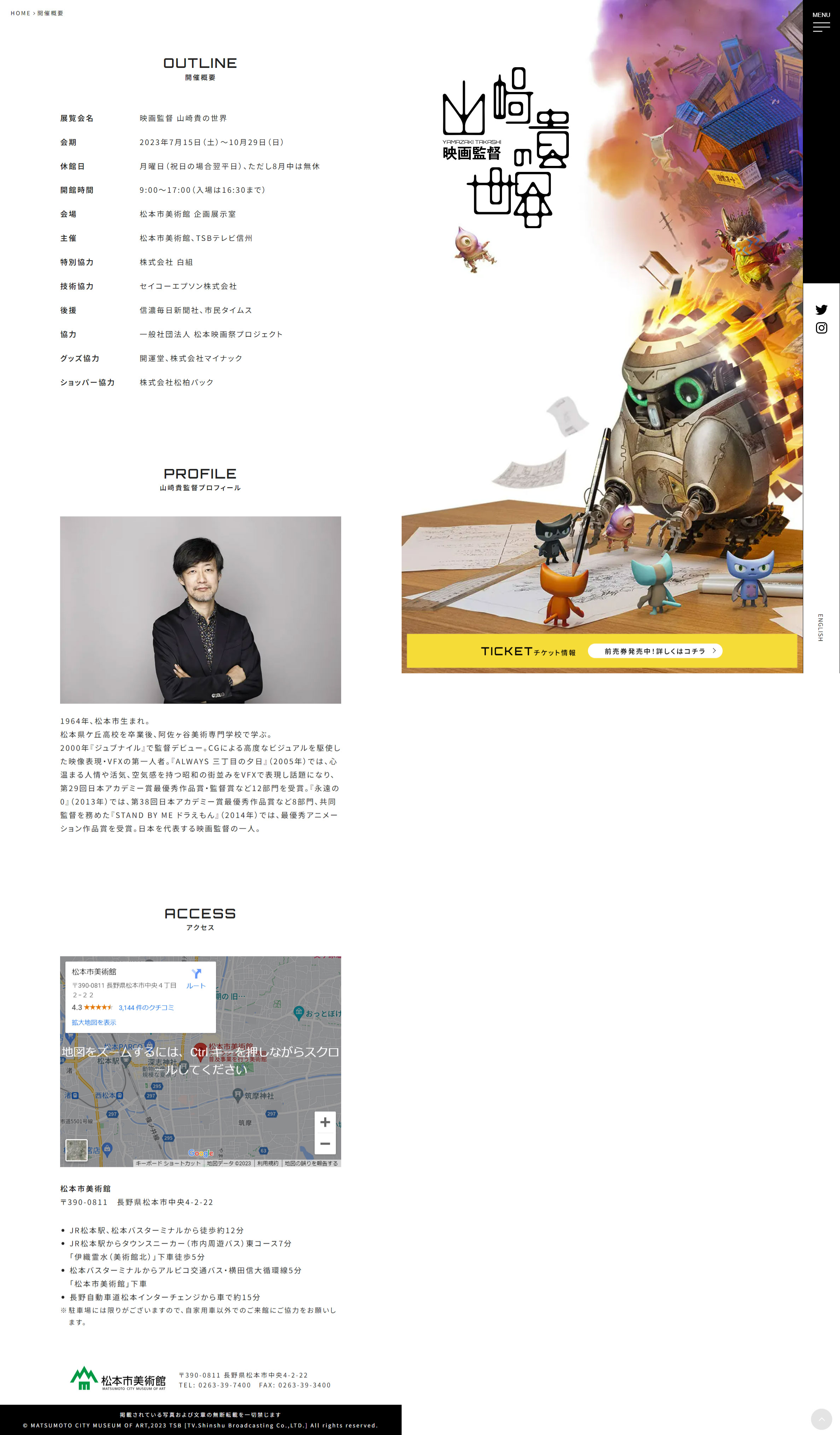 2023年7月15日~10月29日、松本市美術館で行われる「映画監督 山崎貴の世界」の公式ウェブサイトです。