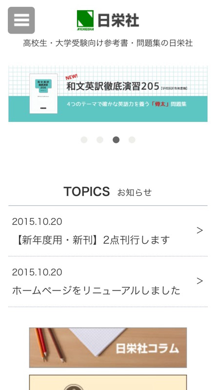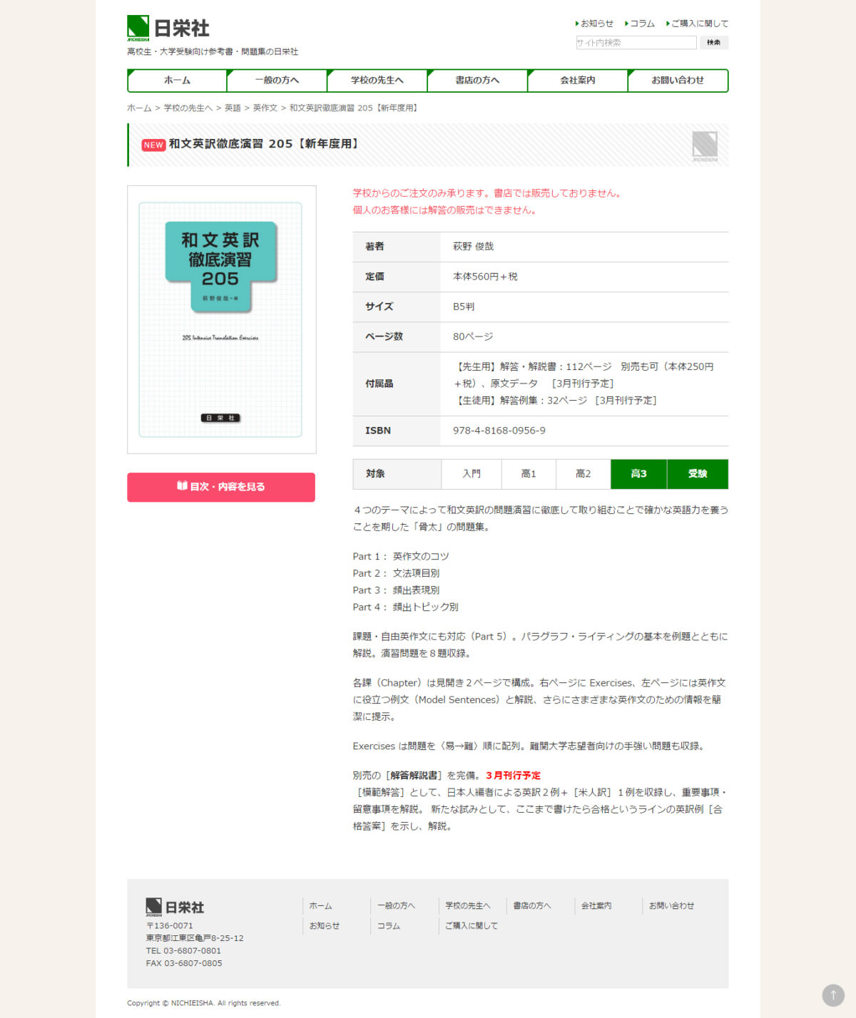 東京・亀戸にある高校生・大学受験向け参考書などを出版する「日栄社」のサイト。 WordPressで構築。 リニューアルに合わせて、ロゴも制作しました。