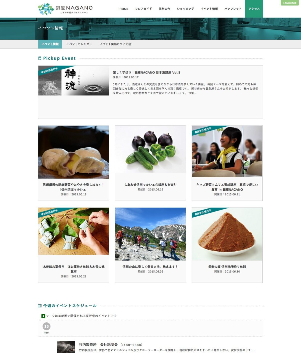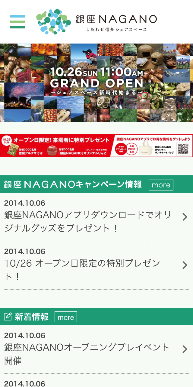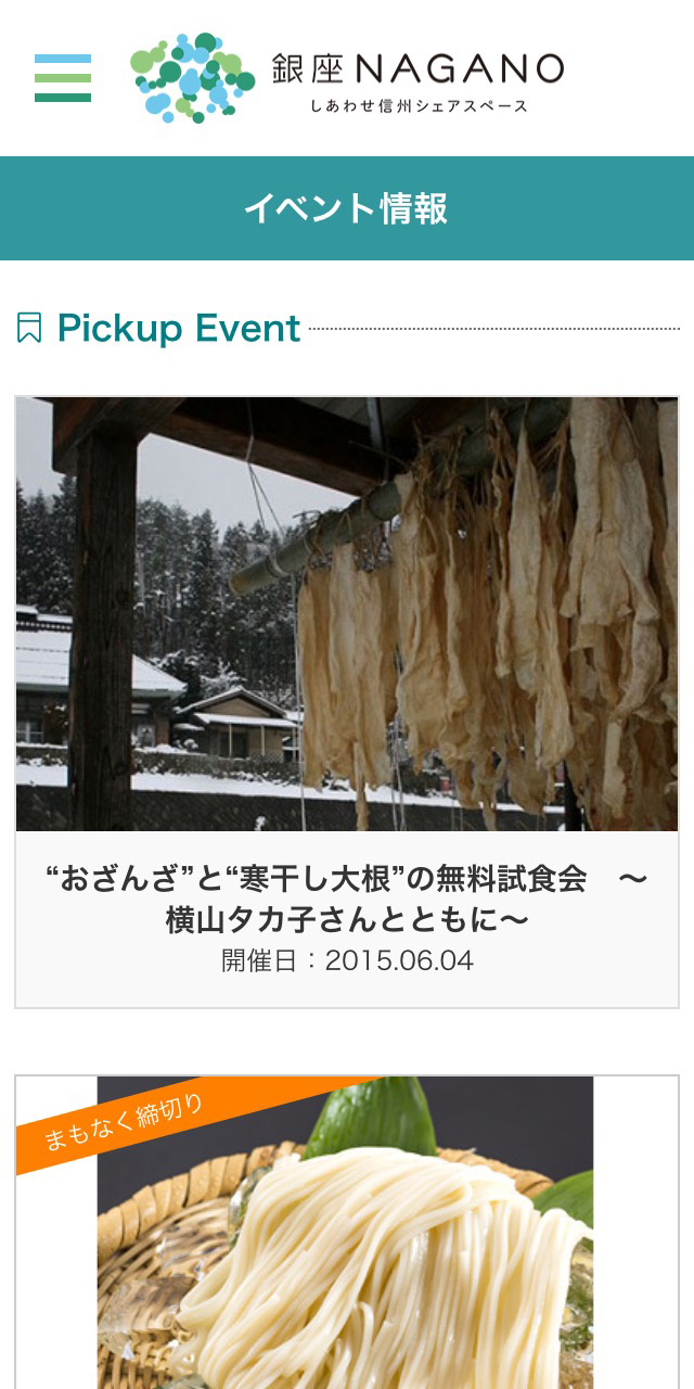 2014年10月に銀座にオープンした長野県首都圏総合情報発信拠点「銀座NAGANO しあわせ信州シェアスペース」の公式サイト。 WordPressで構築。 「イベント情報」の参加申し込みの受付システム、主催者からのイベント情報登録専用ページも制作しました。